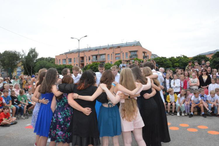 Konečně se žáci devátých ročníků po dvou letech dočkali letos tradičního zakončení školního roku. Všichni žáci a vyučující naší školy se sešli na konci června na Cestě svobody. Nejprve byli panem ředitelem odměněni nejlepší sběrači papíru a pak již následovalo rozloučení s devátými ročníky a se školním rokem. Jak už bývá zvykem, deváťáci si připravili taneční vystoupení s prvňáčky a milé poděkování jednotlivým vyučujícím.