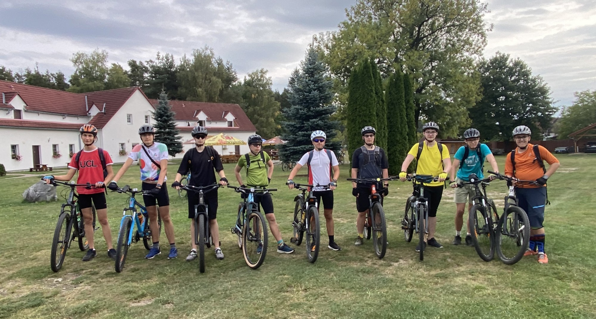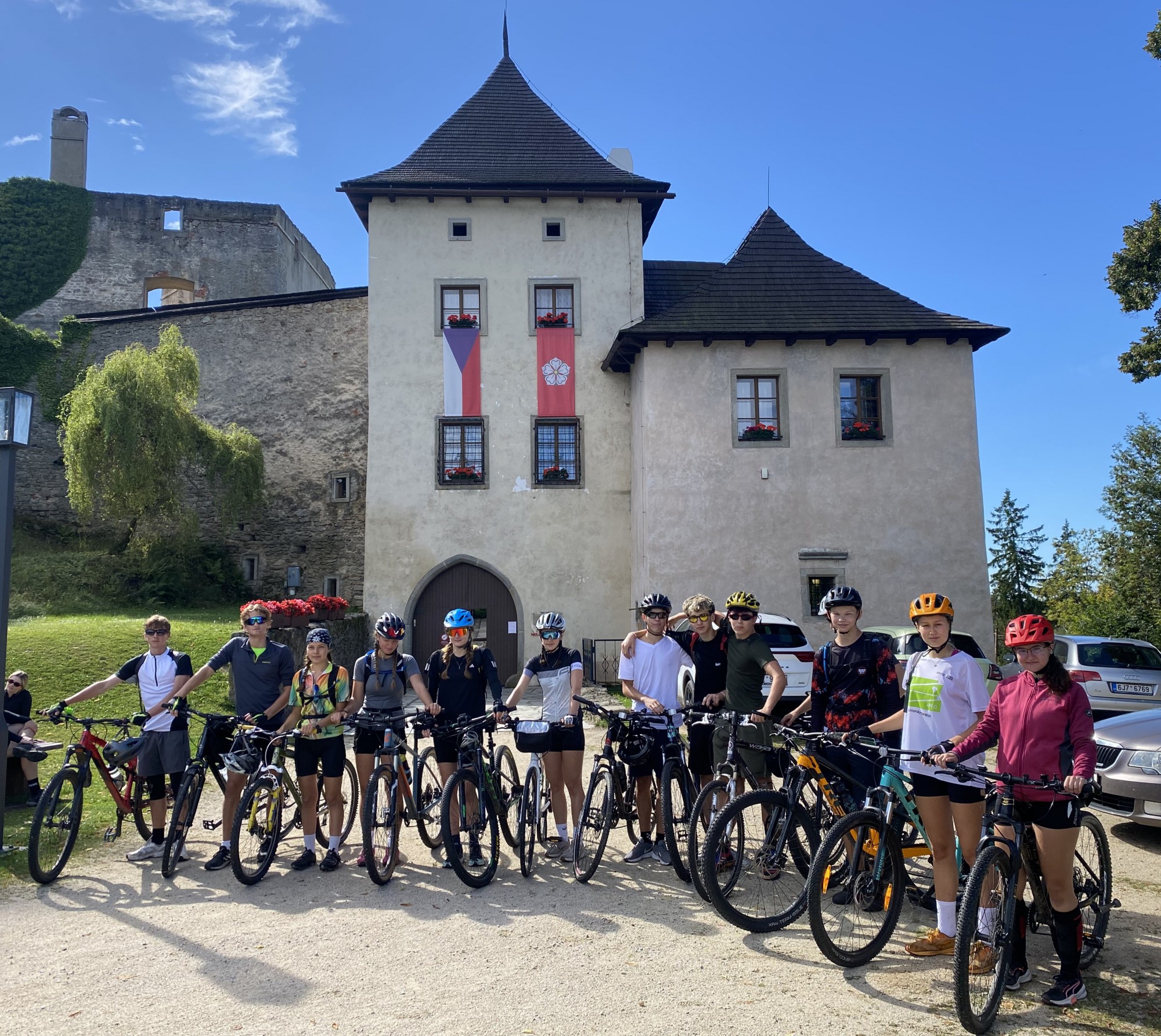 V druhém zářijovém týdnu se sexta a oba druhé ročníky vydaly na cyklistický kurz. Naše základna, ze které jsme každý den vyráželi na cyklistické a poznávací výpravy, se nacházela v malebné vesničce Hamr u Chlumu u Třeboně. Společně jsme za pět dní najezdili stovky kilometrů, navštívili krásná místa a zažili všemožná dobrodružství. Vše, ať už ztrátu – malé „zakufrování“ studenta či učitele –, přeštípávání zámku po ztrátě klíčku, nebo několikanásobné prasknutí duše, jsme nějakým způsobem zvládli vyřešit a v některých případech se u toho i pobavit. Díky krásnému počasí, skvělému jídlu, a hlavně dobré partě jsme si „cyklák“ naplno užili a rozhodně na něj v životě budeme nejednou vzpomínat.