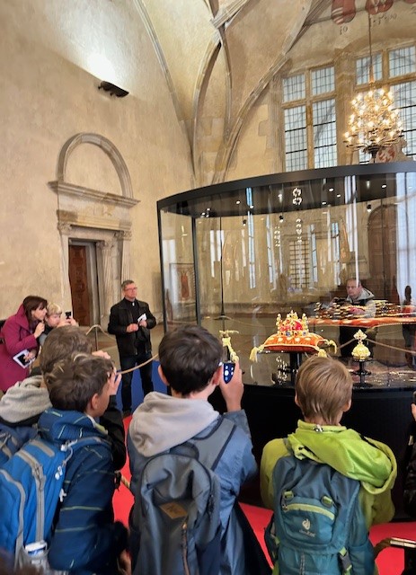 Dne 26. září jsme se s naší třídou vydali na celodenní dějepisno-anglickou exkurzi do Prahy. Po příjezdu jsme zamířili do areálu Pražského hradu. Naše exkurze začala prohlídkou korunovačních klenotů, které většina z nás viděla poprvé v životě, a byl to moc krásný zážitek. Výstava byla na téma druhé světové války. Také jsme navštívili všechna tři nádvoří, a poté katedrálu sv. Víta a Zlatou uličku, kde jsme měli možnost prohlédnout si malé domečky. Exkurzi jsme zakončili u věže Daliborky. Celý den jsme si moc užili a také se dozvěděli spoustu nových informací.