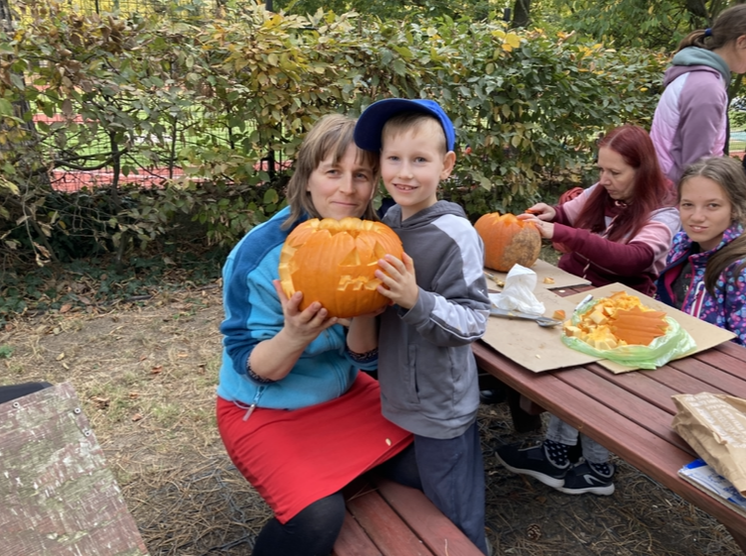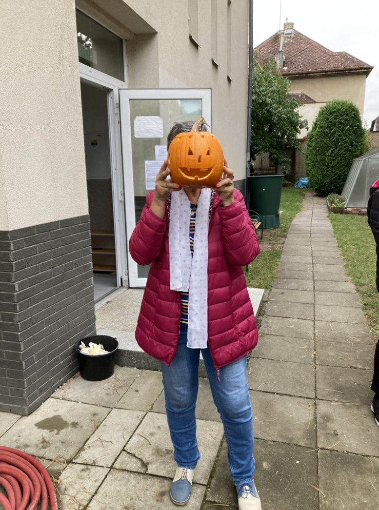Na školní zahradě se sešli paní učitelky, rodiče a žáci a všichni společně se dali do vyřezávání a dlabání dýní. Většina zúčastněných byla do práce tak zabraná, že jim nevadil ani drobný deštík. Ti, kterým ta drobná přeprška malinko kazila náladu, se měli možnost uchýlit do naší nové venkovní učebny. Všem se jejich „dýňáci“ moc povedli.
