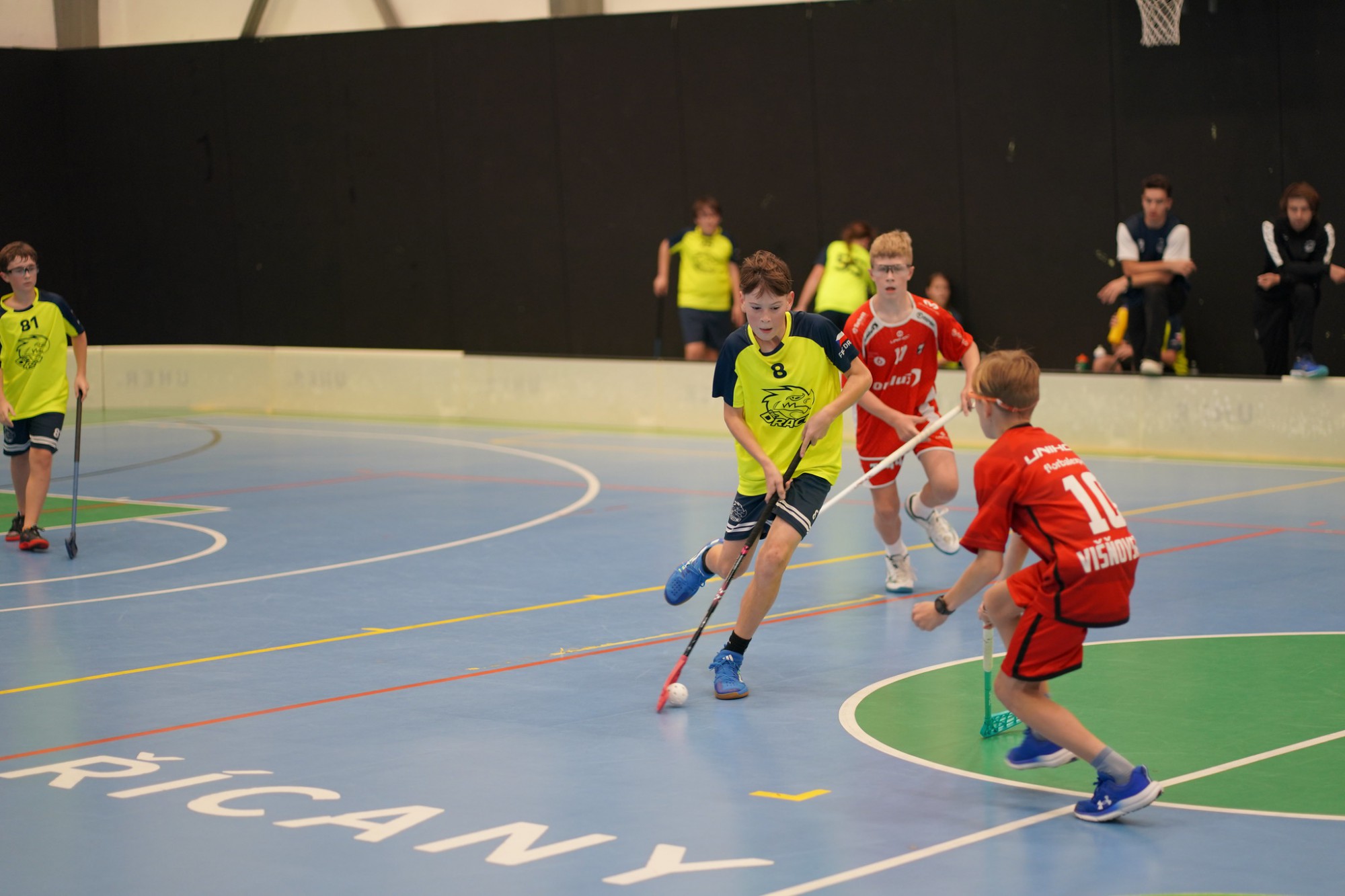 Pro trochu zkušenější elévy máme v klubu tři týmy, jeden z nich hraje dokonce v nejvyšším výkonnostním koši v regionu Praha a Střední Čechy. V této kategorii máme spoustu dětí, takže se je na turnajích snažíme střídat, aby každý okusil atmosféru soutěžního zápasu. Bílý, modrý i žlutý tým zatím posbíral výhry, porážky i remízy a hráči se těší na další zápasy.