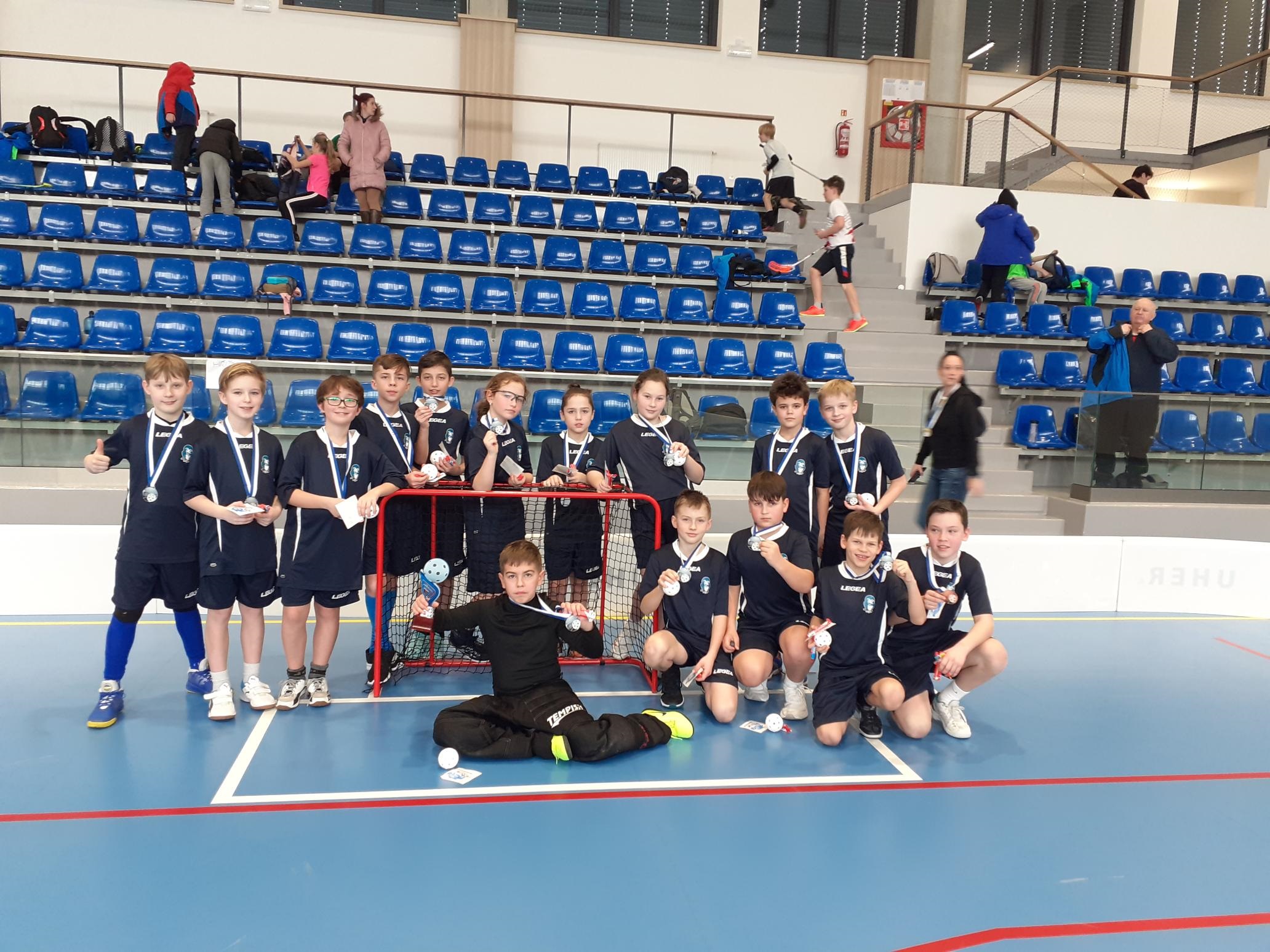 Dne 15. 2. 2024 se náš tým (15 dětí – 13 chlapců + 2 dívky) účastnil turnaje mezi školami, do kterého se přihlásilo sedm družstev. Turnaj se hrál v krásné nové a čisté hale, která se nachází na Komenského náměstí, hned vedle gymnázia.