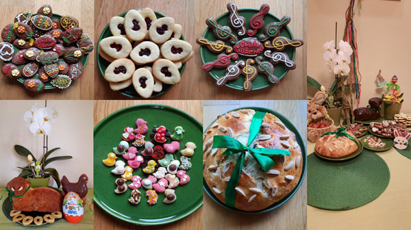 Velikonoční tradice se u nás drží už nespočet let. Nejinak tomu bylo u nás doma i tento rok. Hned vedle dveří stojí ozdobená květina. Přivázala jsem na ni mašličky a společně jsme na ni vyrobili vajíčka voskovou technikou a voskovkami. Na dveřích máme velikonoční věnec, který si vyrobíme doma. Na každé květině v domě máme velikonoční ozdoby. Ať už se jedná o petrklíče, orchideje nebo o kaktus. Každý rok si na ně vyrobíme novou ozdobu. Letos jsme použili techniku omotávání vajec bavlnkou. I můj pokoj má spoustu ozdob. Každé Velikonoce pečeme velikonoční nádivku a perníčky, beránka, mazanec i jidáše.