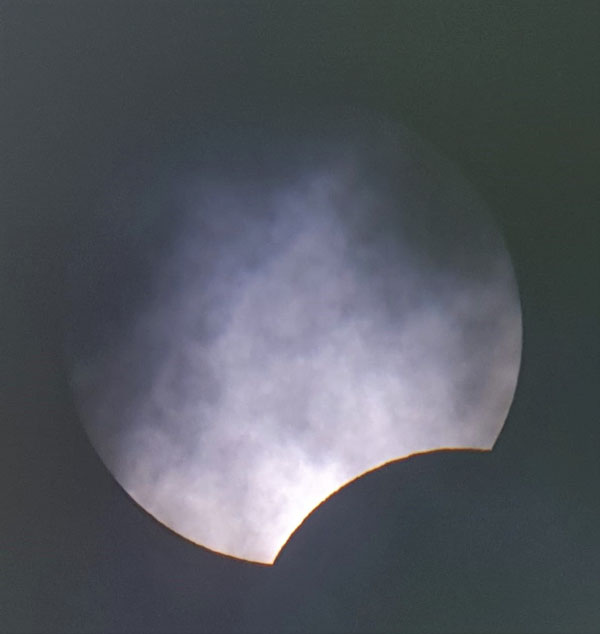 I když občas pozorování bránila oblačnost, většinu doby byl úkaz dobře viditelný. Bouřka s pořádným lijákem přišla až později odpoledne, kdy bylo již dávno po úkazu.