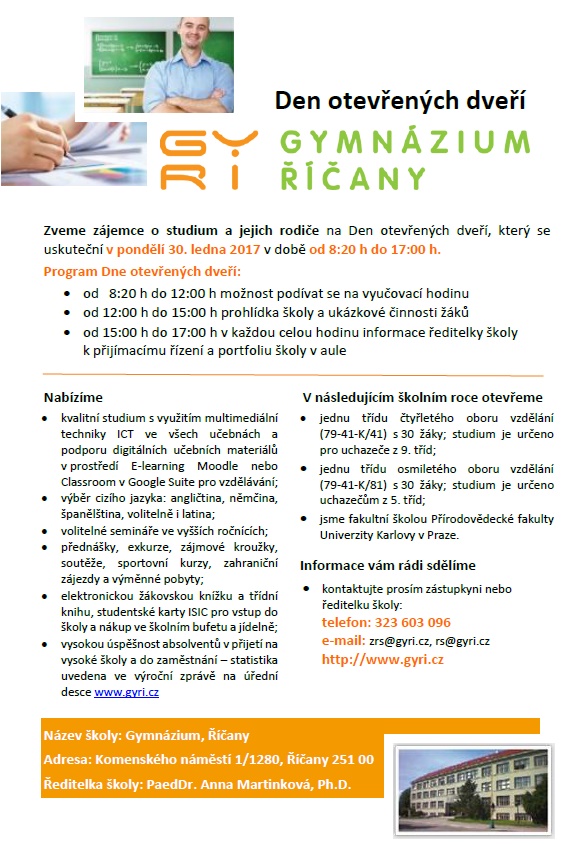A právě to Vám za Gymnázium Říčany srdečně přeji; abyste svátky strávili v klidu, pohodě a hlavně podle svého a aby na Vás v roce 2017 čekalo mnoho pěkných příležitostí a zážitků.