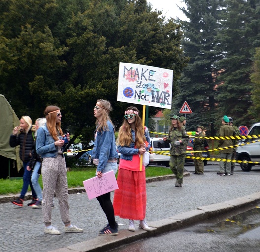 V pátek 28. dubna se před gymnáziem objevila pozemní vojska a proti obsazení budovy školy protestovali zástupci hnutí hippies. Ale nemusíte mít obavy o bezpečnost našich studentů, to se jen letošní maturanti loučili se školou. A k tomu studentská recese patří. Po manévrech před školou uspořádali studenti v aule školy divadelní představení, ve kterém předvedli veselé historky ze školních lavic a odebrali se pilně studovat učivo k maturitě. Držme jim palce, ať vše dobře dopadne.