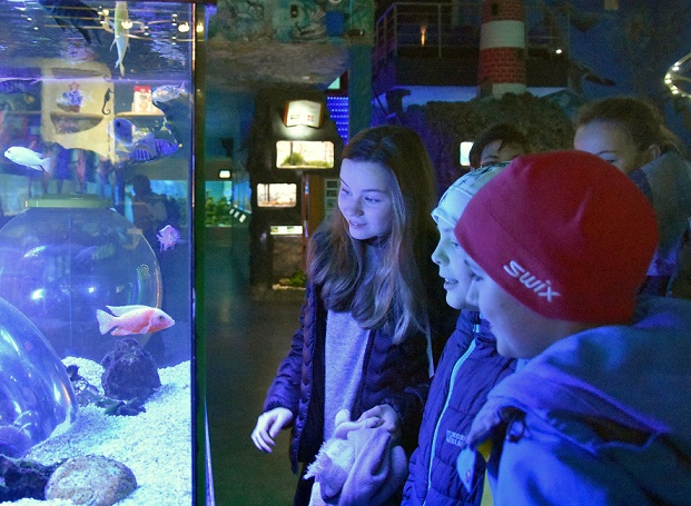 Před vánočními prázdninami jsme se septima a třetí ročník vydaly s třídními profesorkami do Mořského světa a Národního technického muzea. V Mořském světě jsme vyslechli přednášku o nejzajímavějších druzích ryb chovaných v prostorách výstavy a jiných mořských potvorách. Později jsme měli možnost prohlédnout si akvária sami a dokonce i nakrmit ryby v jednom z akvárií. Exkurze končila krátkým dokumentárním filmem o žralocích a nebezpečných setkáních s jinými zvířaty. Svoje znalosti jsme si ověřili vypracováním pracovního listu. Následovala návštěva NTM na Letné. Hlavní náplní prohlídky byla výstava protetiky, která nás seznámila s historií i současností protetiky, perspektivami náhrad lidského těla a poukázala na propojení medicíny s vědou a technikou. Výstava vznikla ve spolupráci s Univerzitou Karlovou a Národní lékařskou knihovnou. Od naslouchadel přes prsní implantáty, až ke složitým kyčelním endoprotézám. Koho by takováto výstava nezajímala. NTM skrývá i další edukační programy a interaktivní výstavy. Někteří z nás se po výstavě protetiky přesunuli do druhého patra na výstavu očních klamů, kde si mohl každý interaktivně vyzkoušet svou pozornost i trochu motoriky.