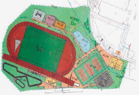 Ješte letos má být vybudováno fotbalové hřiště s umělým povrchem o rozměrech 60x40 m včetně sezónního zastřešení. Umístěno bude uprostřed atletického oválu v délce 250 m se sektory pro skoky a hody. Kromě klasických sportovních disciplín najdou v areálu vyžití například bikeři. Zábavu při projíždění vln a klopených zatáček bez šlapání pumpováním si užijete na delším 141 m dlouhém okruhu. Prostor pro zdokonalení technických i jízdních dovedností na kole poskytne i kratší 36 m dlouhý uzavřený okruh určený mladším dětem i na odstrkovadlech. Autorem projektu pumptrackových okruhů je jeden z nejvetších odborníků na tyto projekty Michal Severa. Za sebou má již celou řadu úspěšných realizací. Vlny a klopené zatáčky modelované z vrstvené a průběžně hutněné zeminy budou mít povrch z litého asfaltu. Není proto důvod se obávat hluku z této atrakce. Dále v I. etape vznikne i venkovní tribuna, osvětlení hřiště a sklad nářadí. Celý areál bude nově oplocen. Vzhledem k řádění divokých prasat, která poničila původní oplocení, bude pletivo nově nahrazeno svařovanou zahradní sítí o síle drátu 3 mm. Zhotovitel plánuje realizaci této první etapy na pět mesíců.