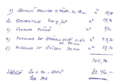 Při jeho přípravě se ale ukázala důležitá až absurdní fakta. Tribuna postavená asi v akci Z za socialismu nikdy nebyla zkolaudovaná a úředně tedy neexistuje. Jde o černou stavbu, kterou vlastně nejde legálně opravovat ani užívat. Legalizaci navíc bránil územní plán. S tím jsme se vypořádali a teď je potřeba rozeběhnout práce na přípravě investice samotné. Na tribunu se určitě nezapomnělo. Vím, že mnoho dětí fotbal miluje a jejich tatínci se hodně snaží. A městu naší velikosti by slušela třeba Česká fotbalová liga, kde hrají Jirny, Zápy nebo Dobrovice. Bohužel fotbalová tribuna zůstává prázdná a není to jen jejím stavem. Z logiky věci jsme dali v začátku důraz na jiné sportovní projekty – od vyhořelých ragbyových šaten přes sportovní areál s nafukovací halou v Pacově po velké sportoviště 3. ZŠ U Říčanského lesa. Máme k přípravě investic poctivý přístup. Třeba hřiště u lesa. ODS mluví o provizoriu, takhle vypadal předložený materiál a propočet stavebních nákladů s domluvenou firmou, vlastně jediná konkrétní věc (viz ručně psaný propočet stavebních nákladů ODS).