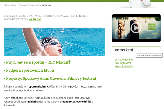 S opravou fotbalových tribun přišlo Klidné město ve svém volebním programu v roce 2014 (viz výřez z programu).