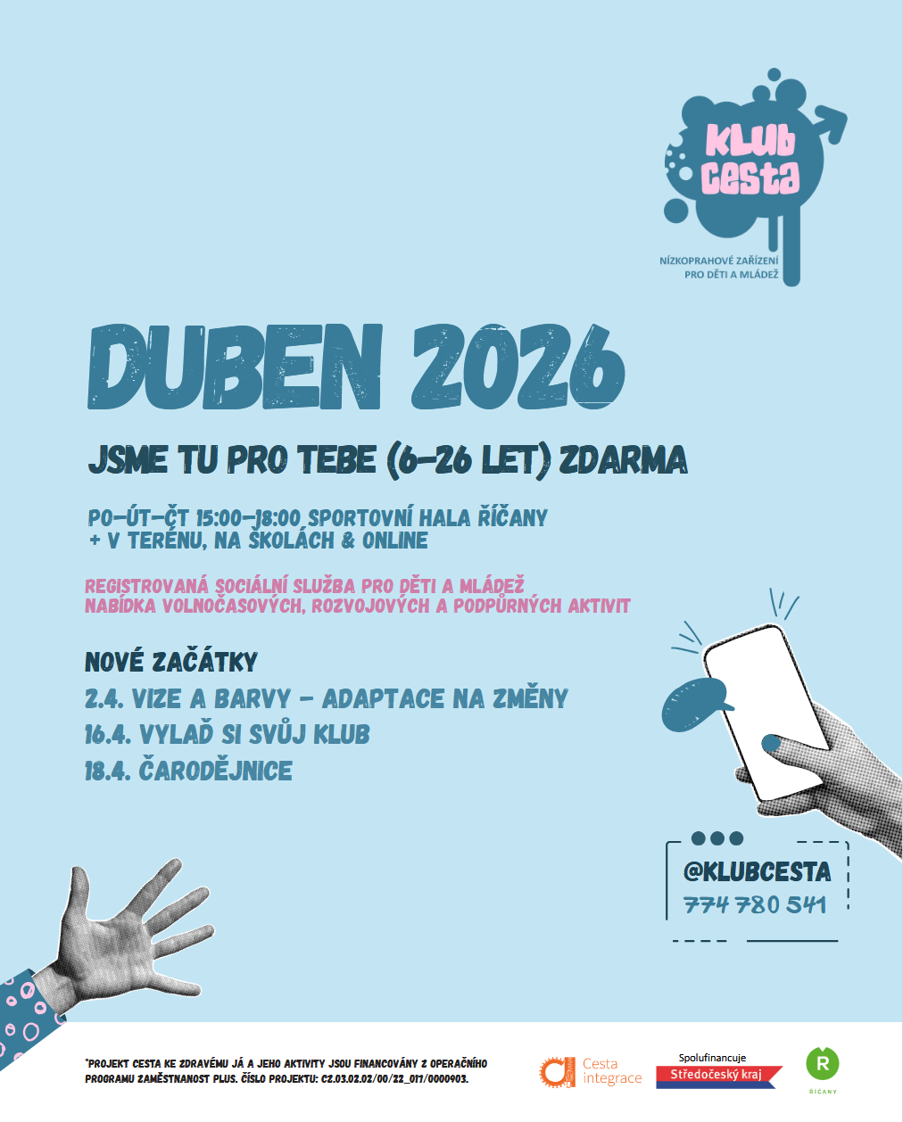 Kontakty: tereza.zajickova@cestaintegrace.cz, IG: klubcesta
