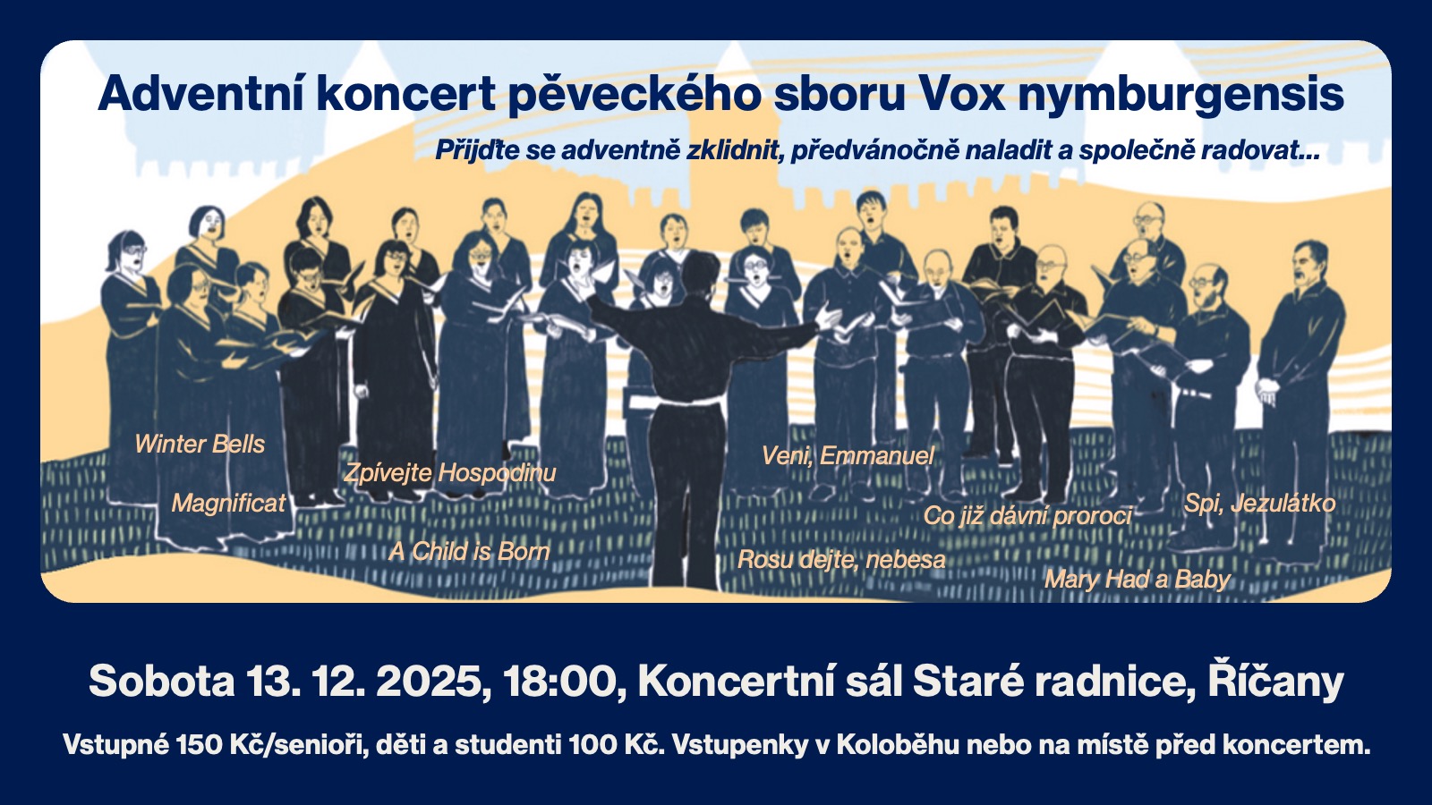 Na závěr vás zveme na předvánoční setkání s nymburským sborem Vox nymburgensis. Přijďte se zastavit, zaposlouchat a sdílet radostnou atmosféru.