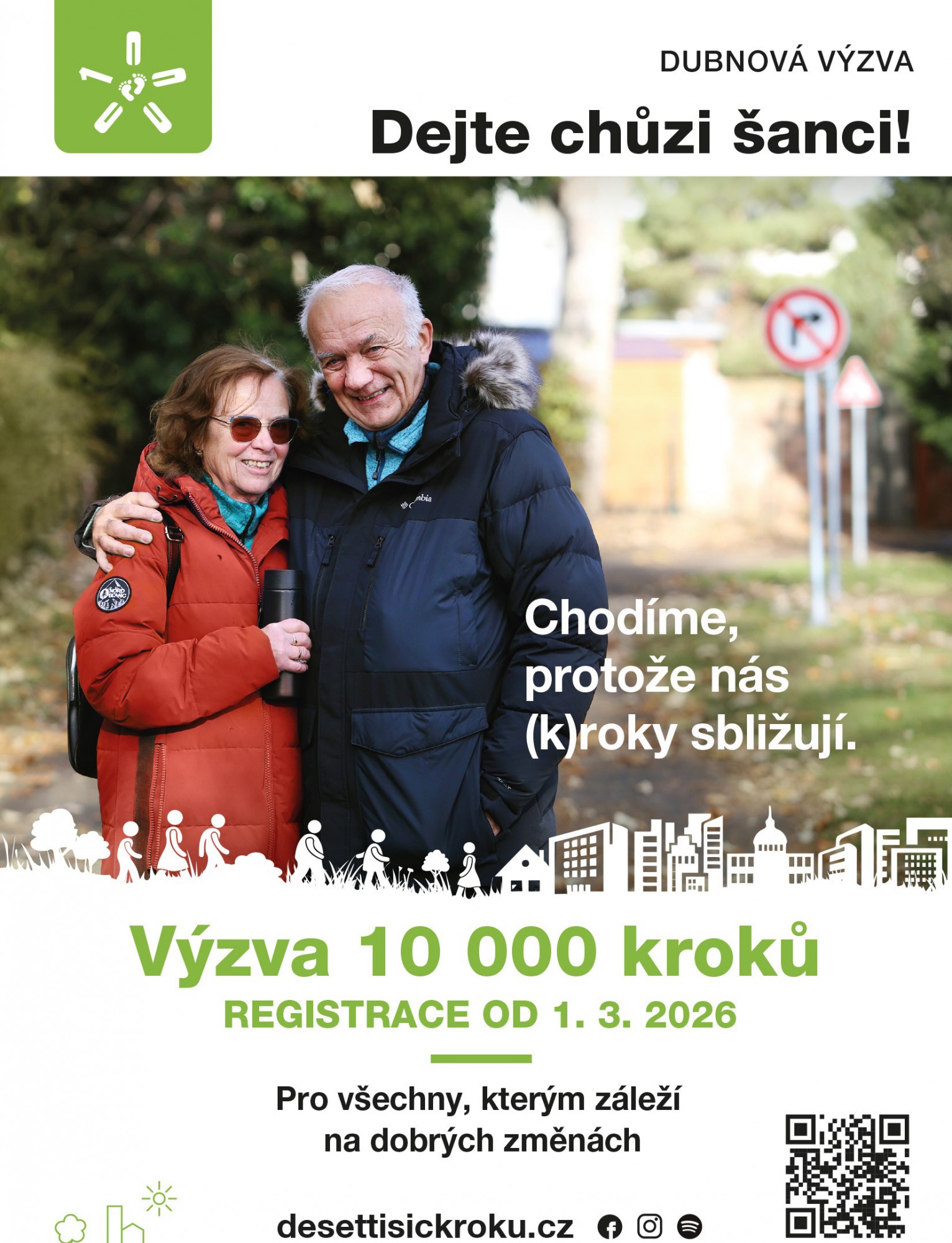 Od 1. března se opět otevírá registrace výzvy 10 000 kroků, do které se Říčany zapojují už třetím rokem. Cílem soutěže je nastavit si svůj denní cíl, chodit pravidelně a udělat něco pro své zdraví. Výzva je vhodná pro každého – zvlášť ale motivuje starší osoby nebo ty, kteří se chtějí více hýbat a zlepšit kondici. Registrace probíhá od 1. března 2026 na www.desettisickroku.cz