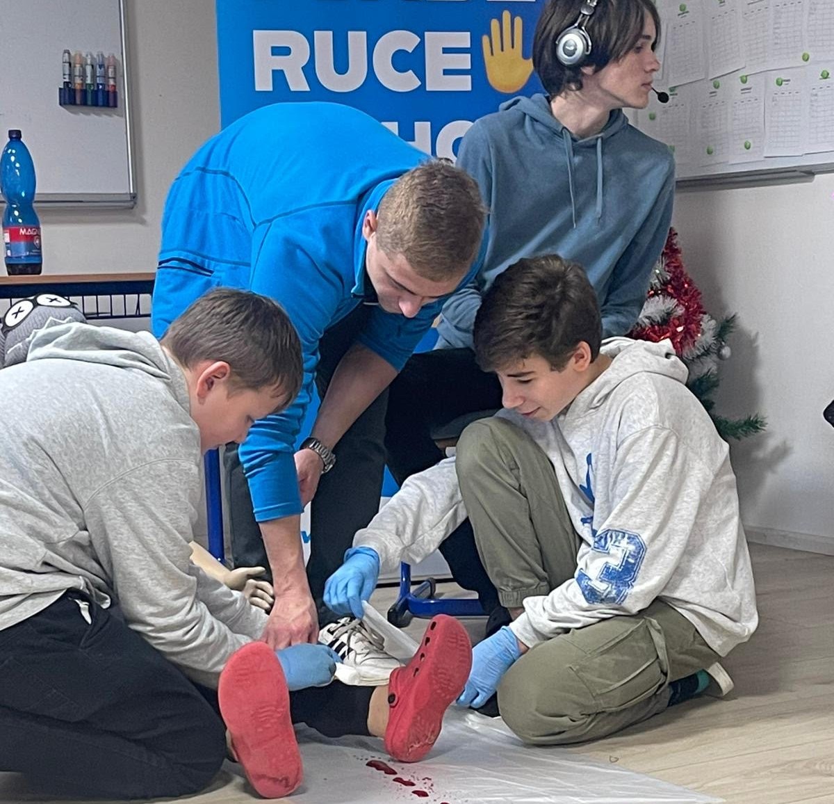 Nejprve si s instruktory zopakovali, kdy a jak správně volat na tísňovou linku a na jaké informace je při tom důležité se soustředit. Poté se pustili do nácviku neodkladné resuscitace – procvičovali správné tempo stlačování hrudníku a dýchání z úst do úst. Následovaly simulace různých zranění a jejich ošetření. Žáci si osvojili postupy při zastavení krvácení a při ošetření zlomeniny. Měli také možnost nahlédnout do sanitního vozu a vyzkoušet si manipulaci s raněným.