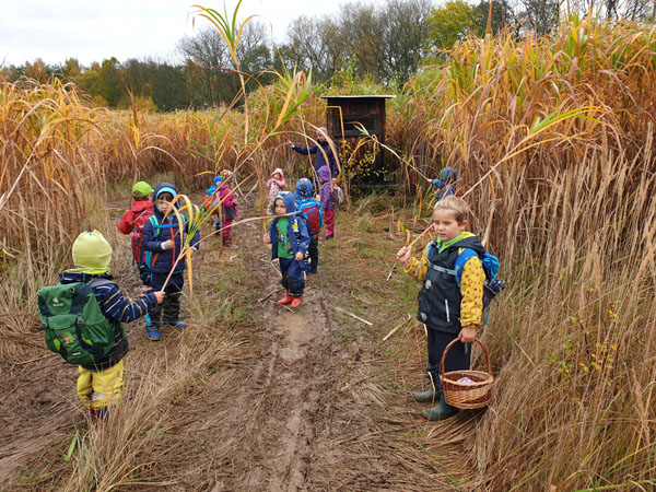Chvilku posedíme, pokusíme se děti ukotvit v čase. „Máme dnes poprvé měsíc listopad, proč se tak jmenuje? Proč padají ze stromů listy?“ Krátce diskutujeme. Potom jsou děti neposedné, už musíme ven. Kam dnes půjdeme? Do Kaňonu! Ne, pojďme k Soutoku. My chceme do Rákosového pole...