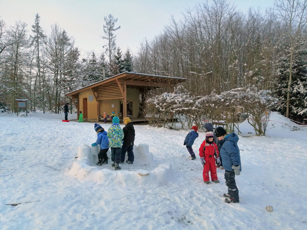 Konečně do sněhu a válet velké koule a jezdit na podsedácích z kopečka. Zima už je tu.