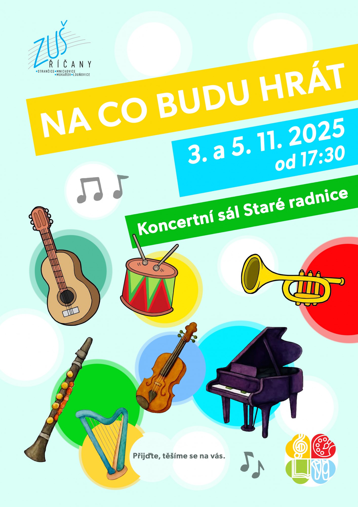 Zábavné koncerty Na co budu hrát? plné hudebních nástrojů pro naše nejmenší se uskuteční 3. a 5. listopadu v 17.30 v Koncertním sále Staré radnice.