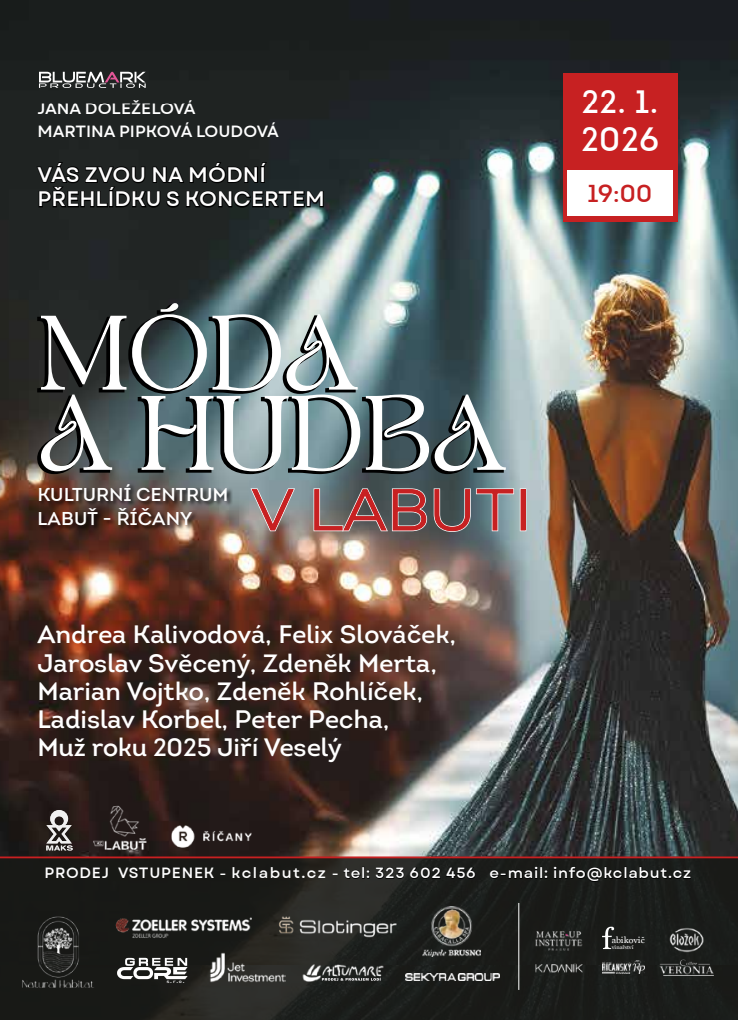 Druhou pozvánkou je multižánrový večer v KC Labuť ve čtvrtek 22. ledna od 19 hodin připravovaný ve spolupráci s umělci české i slovenské hudební scény. Vystoupí mimo jiné Marian Vojtko, Felix Slováček, Peter Pecha, Zdeněk Merta, Andrea Kalivodová, Láďa Korbel a opět Jaroslav Svěcený. Večer doplní módní přehlídka, která programu dodá jedinečný společenský a vizuální rozměr. Chceme společně vytvořit večer, který nabídne krásu hudby i umění v jejich nejživější podobě.