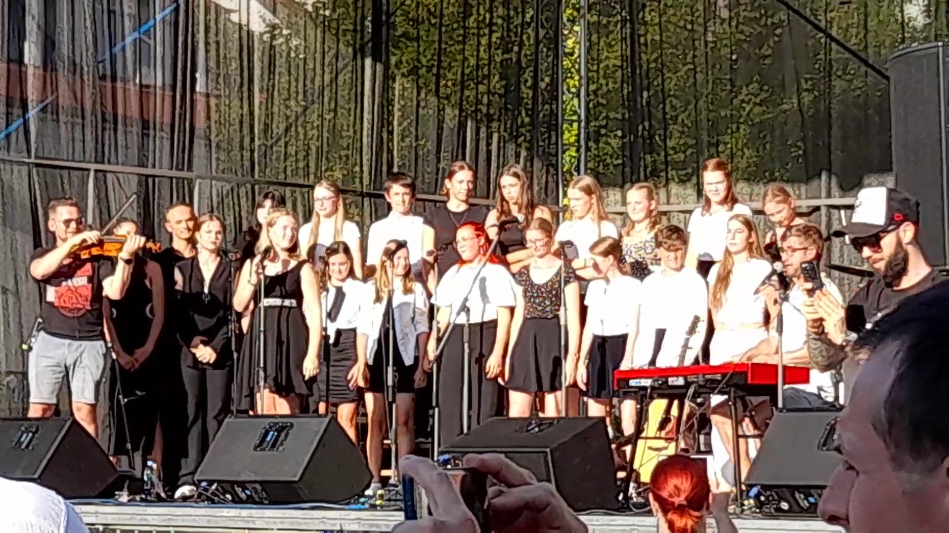 Hudební třídy zahájily školní rok samozřejmě hudbou! A rovnou se známým písničkářem Michalem Horákem. Komorní sbor se zmíněným umělcem vystoupil na městských slavnostech v pátek 8. září. Před dvěma lety vyšel videoklip písně Plány jdou, na kterém se podíleli žáci našich hudebních tříd. A právě tuto píseň si sbor se sympatickým Michalem zazpíval. Michal Horák pobavil svými vtipnými písněmi všechny generace a atmosféra celého koncertu byla úžasná. Jsme vděční, že jsme se s Michalem mohli opět sejít, a to i na pódiu.