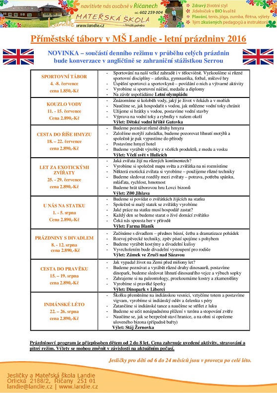 Příměstské tábory v MŠ Landie - letní prázdniny 2016