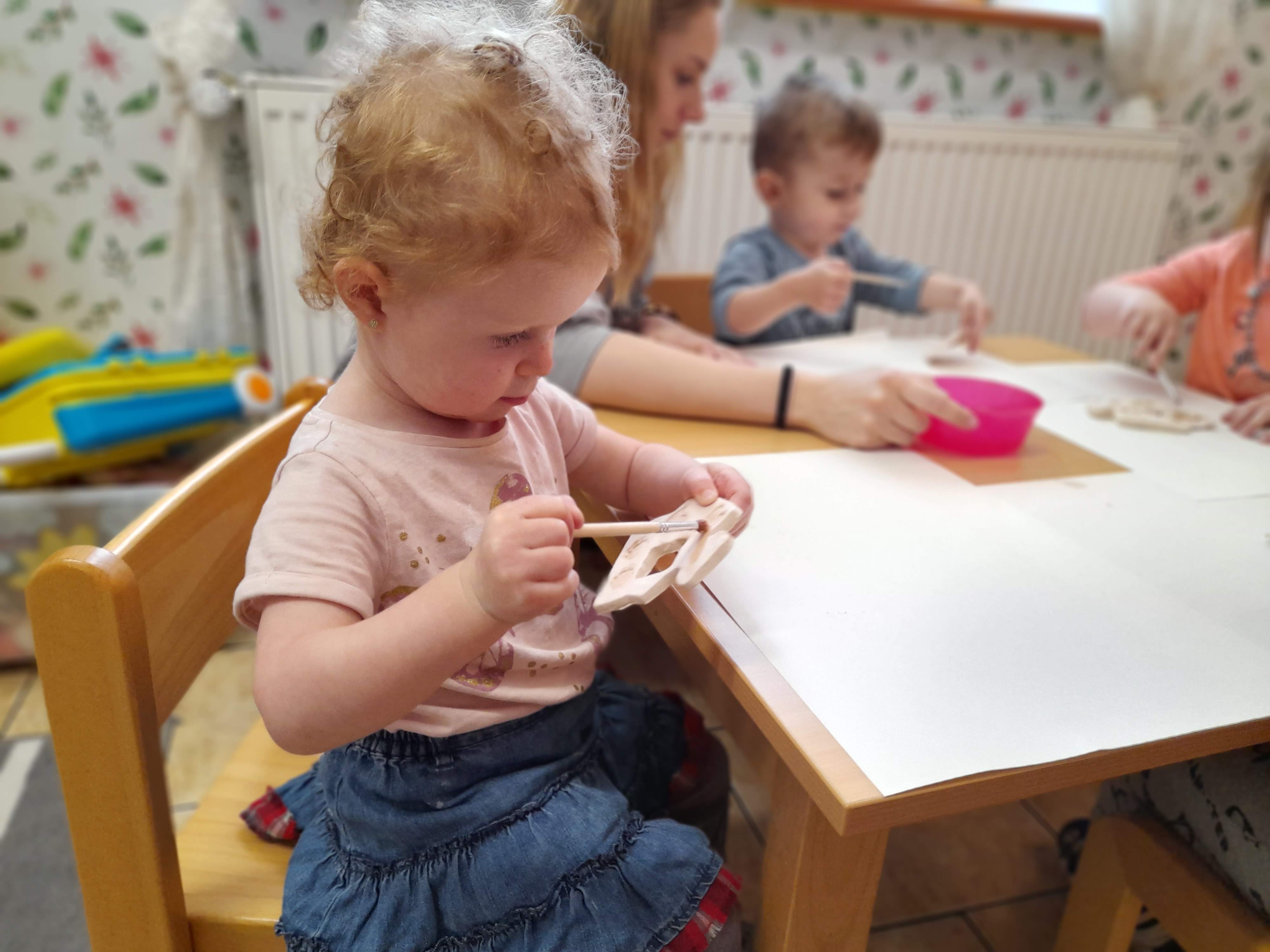 logopedie skvělý způsob, při kterém se spolu vzájemné přímo rozvíjí řeč i jemná motorika. Děti si vyzkoušely základní techniku přístupu ke keramické hlíně, modelování z plátů, z čehož vznikly krásné domečky. Poté si vyzkoušely další techniku a tou bylo vytvoření kuličky a z ní pak přívěsek.
