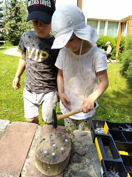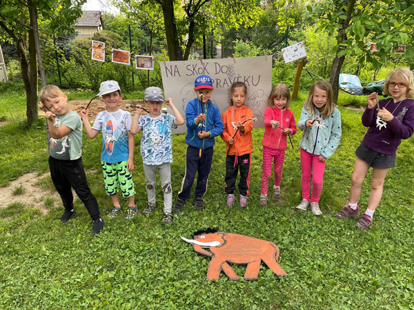 Čas od Vánoc je dlouhý. Vánoční setkání se nemohlo uskutečnit, a tak aspoň Masopust nás rozveselil. V obchůdku s jitrnicemi bylo plno, za zlaťáky a stříbrňáky se nakupovalo ostošest. Povedl se i hod jitrnicí do kotle a kdo mohl, vylezl si pro preclík. Mňam. A pak bum. Všichni doma - Velikonoce doma. Nevidíme kamarády, nevidíme paní učitelky. Nicméně ty to vzaly do svých rukou a i při distančním předškolním vzdělávání se snažily, aby děti jen neseděly doma, ale také chodily ven, hýbaly se a přemýšlely. Jak? Vznikaly nové školkové trasy s kamínky, hudební a divadelní videa, videa s pokusy. Ke klasickým pracovním listům se učitelky pokusily situaci řešit tak, aby co nejméně zatěžovaly rodiče v nelehké situaci a nabídly aktivity, které zvládnou děti samy nebo při společné rodinné procházce. Během uzavření školky probíhalo malování ve třídách a úprava tříd pro návrat dětí. Návrat dětí do školek byl, řečeno jedním slovem, hlučný. Děti se těšily na kamarády, nicméně izolace byla pro ně nepříjemná a hlavně nepřirozená. S touto situací jsme se úspěšně popraly a dětem jsme připravily pestrou nabídku vzdělávací, sportovní i tvořivou (Den dětí, letní sporty, řemesla). Závěr školního roku mohl probíhat už jako vždy – loučení s předškoláky, kdy jsme se společně sešli na zahradě při opékání buřtů a pasování předškoláků na školáky či na stanování na zahradě s dobrodružnou hrou „Na skok do pravěku“. Věříme, že další roky přinesou našim dětem jen společné chvíle jako dřív - s pohybem a smíchem s kamarády.