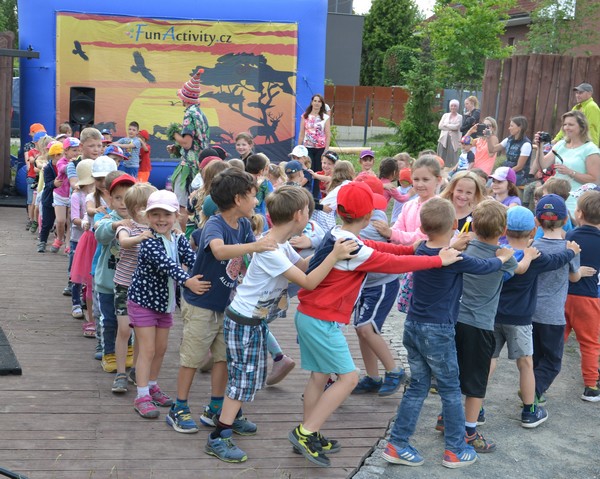 na obřích trampolínách i nafukovacím polštáři a vyzkoušely hopsakoule. Ve zvířátkově jsme si prohlédli a pohladili různá domácí zvířata a kouzelník Pan Kravata nás pobavil svou kouzelnickou show. Počasí nám vyšlo, takže jsme si oba výlety náležitě užili. Na zahradě naší školy jsme s dětmi oslavili den dětí. Připravili jsme pro ně několik stanovišť s různými úkoly (skákání v pytlích, skok do písku, zatloukání hřebíků, hod na cíl, kreslení poslepu a jiné), za jejichž splnění si každý odnesl drobnou odměnu. Sluníčko nám sice trochu víc hřálo, ale všichni jsme to zvládli bez úhony.