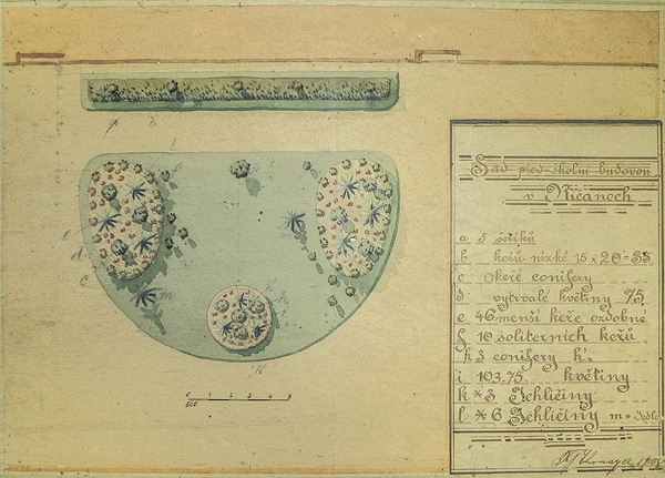 Na fotografii můžeme vidět návrh průčelí z plánu přestavby hostince Fr. Zajíčka v Říčanech z r. 1894 (čp. 79, dnes roh ulic Na Hradě a Rooseveltova).