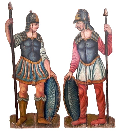 Jedná se o přibližně 130 centimetrů vysoké dřevěné kulisy dvou stylizovaných římských vojáků. Pravděpodobně pocházejí z některého kostela na Říčansku, možná přímo z našeho kostela sv. Petra a Pavla. Do muzea byly darovány v roce 1939 soukromou osobou. Domníváme se, že se jedná o strážce Božího hrobu, tedy římské vojáky Piláta Pontského, kteří od ukřižování Ježíše Krista do jeho zmrtvýchvstání střežili Ježíšův hrob, aby se snad některý z jeho učedníků nepokusil tělo ukrást. Pro připomínku této události jsou často v kostelech i dnes na velikonoční Bílou sobotu Boží hroby zřizovány. Lidé je tam mohou po dobu jednoho dne navštěvovat. V říčanském kostele bývá tento hrob umístěn v boční kapli se středověkými nástropními malbami (bývalé podvěží), ovšem bez kulis vojáků. Jinou možností je příslušnost jmenovaných kulis ke scéně Ukřižování (Kalvárie), která bývala většinou stabilně porůznu umísťována při církevních objektech.