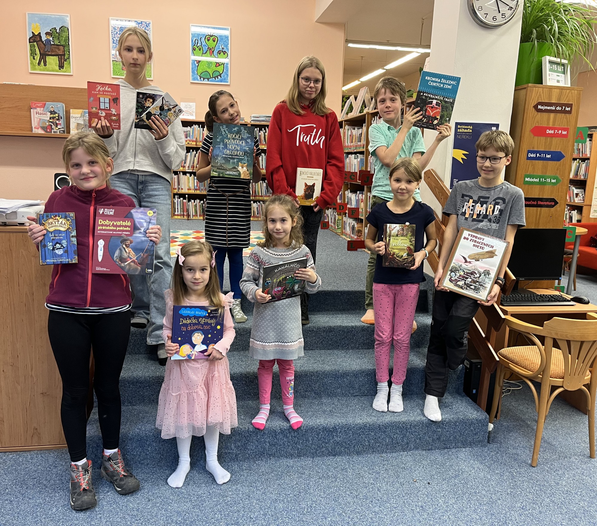Podvečer 6. listopadu se u nás v knihovně nesl ve slavnostním duchu. Přivítali jsme nejúspěšnější čtenáře z 1. ročníku hry Lovci perel. Výherců jsme nakonec nevyhlásili deset, ale hned jedenáct – dvě děti totiž měly shodný počet nasbíraných perel. Gratulujeme následujícím výhercům (v závorce uvedený počet nasbíraných perel = počet přečtených knih):