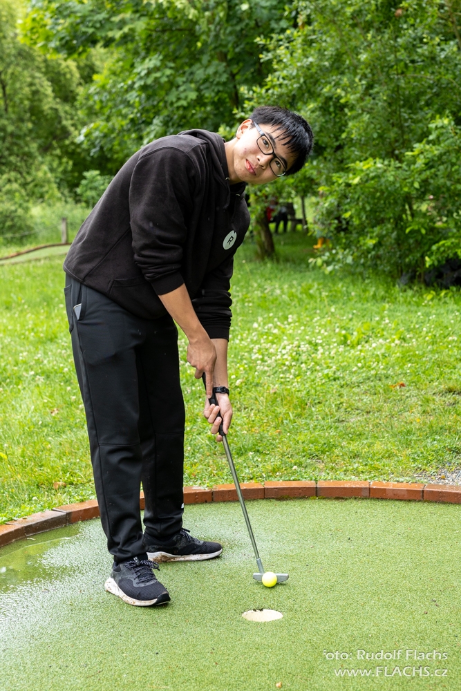Na našem stanovišti s číslem 7 si děti mohly vyzkoušet hraní minigolfu. Dětem jsme byli k dispozici, kdyby potřebovaly pomoct nebo poradit, a následně jsme jim udělovali razítka za úspěšné zdolání stanoviště. I přes nepříznivé počasí si to všichni užili.