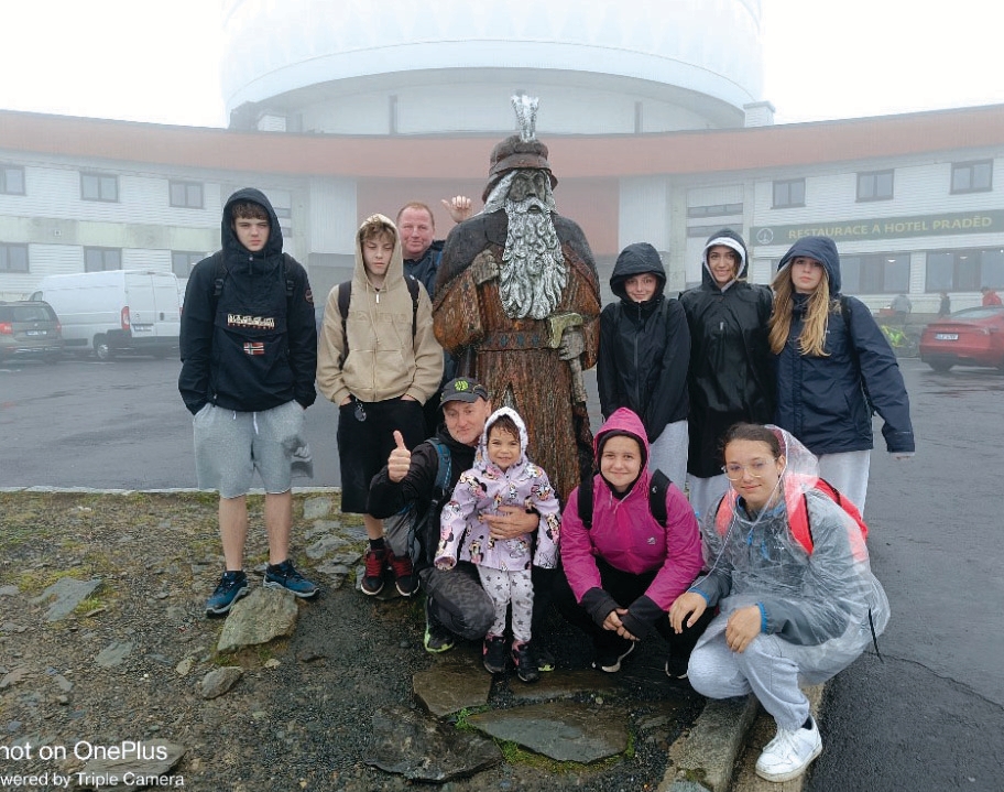 Základní tábor jsme rozbili v Prostějově, odkud jsme v sobotu brzy ráno vyjeli do krásných lázní Karlova Studánka v pohoří Hrubý Jeseník. Odtud jsme se vydali strmým stoupáním kouzelnou cestou podél vodopádu říčky Bílá Opava. Přes žebříky, dřevěné mosty, schodiště a jiné nástrahy jsme po pěti kilometrech došli k turistické chatě Ovčárna, kde jsme se občerstvili a nabrali síly před závěrečným stoupáním k vrcholu Pradědu. Bylo to potřeba, protože na posledních dvou kilometrech se prudce zhoršilo počasí, rozfoukal se vítr, začalo pršet a všechny pěkné výhledy zahalovaly mraky. Přesto jsme všichni došli až do restaurace pod vysílačem. Zvěčnili jsme se u dřevěné sochy Praděda a po krátkém odpočinku vyrazili zpět k chatě Ovčárna a odtud autobusem sjeli do Karlovy Studánky a vrátili se do Prostějova. Hřála nás radost ze zdolaných dvanácti kilometrů, a hlavně z pevné vůle, která nám umožnila i přes nepřízeň počasí zdolat vysněný vrchol.