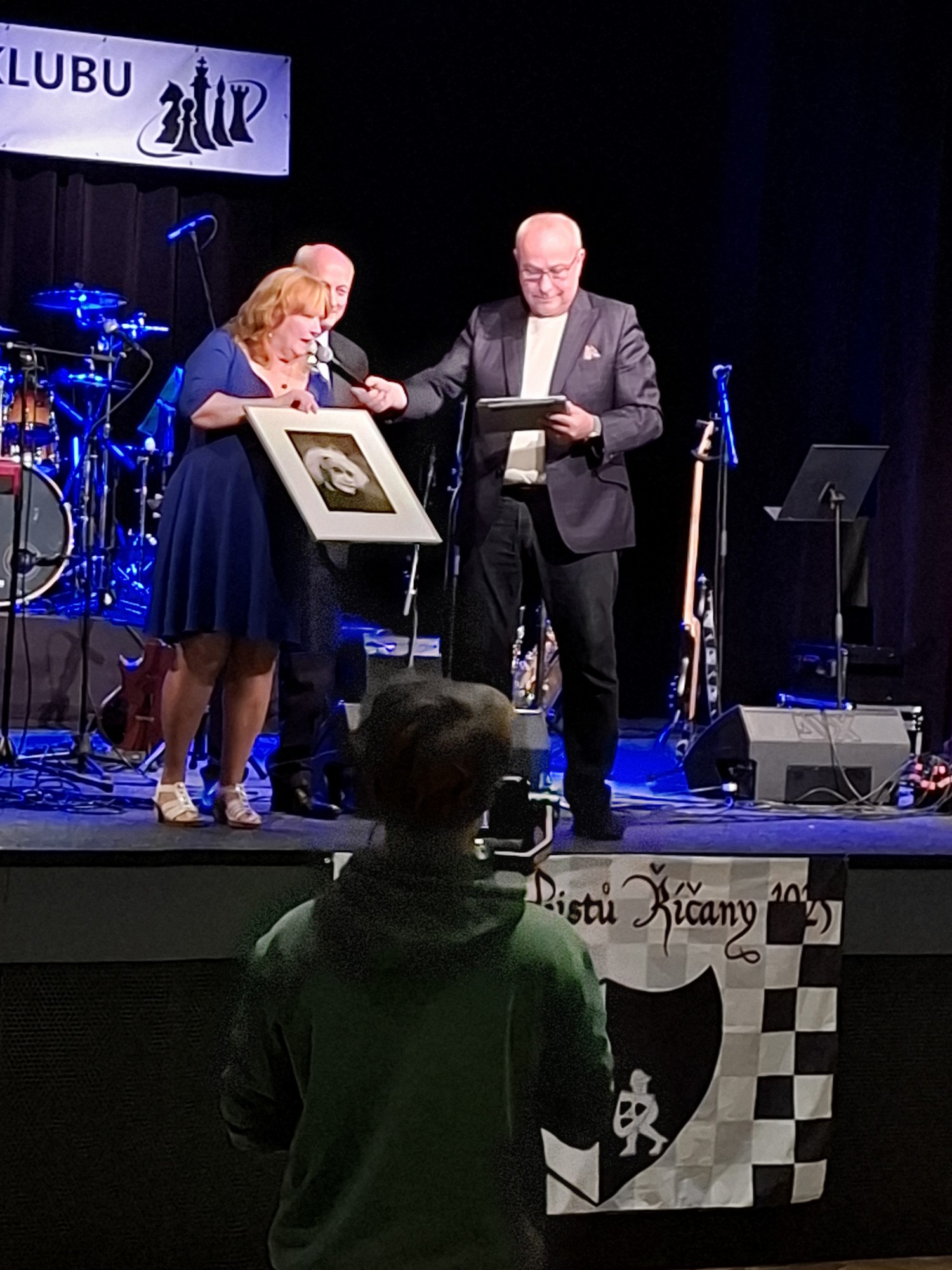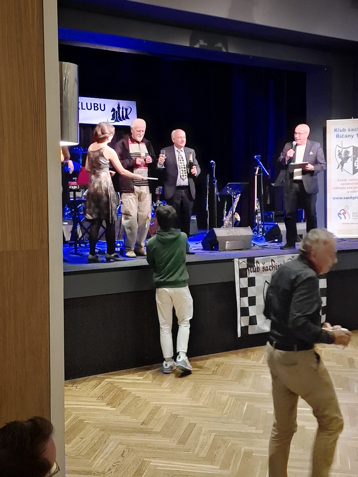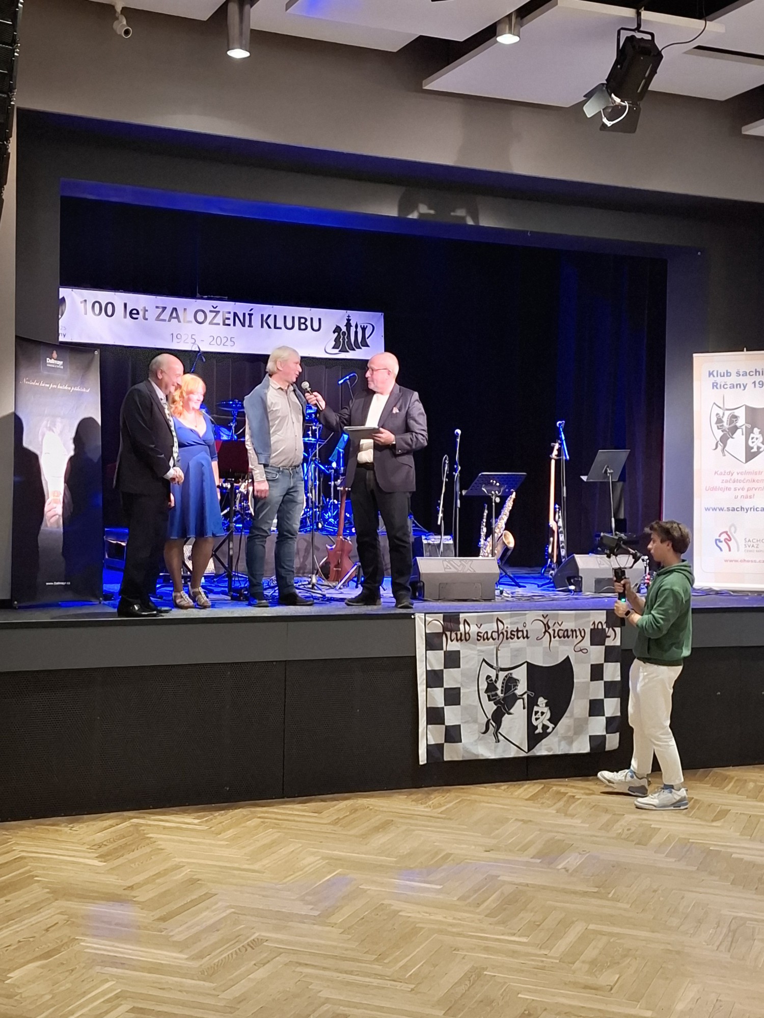 Velkou radost nám udělal společenský večer, který úžasně moderoval Jan Pokorný. Večer byl výjimečný také díky řadě ocenění, jehož součástí byl křest knihy ke sto letům klubu a také uznání, k němuž patřila podobizna Einsteina od známého říčanského malíře a grafika Tomáše Hřivnáče. Sál byl zaplněn současnými i bývalými hráči.