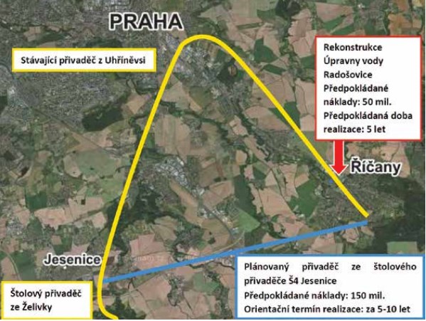 Z vypracované Studie zásobení Říčan pitnou vodou z října 2017 vyplývá jako nejvhodnější varianta připojení vodovodní sítě v Říčanech novým přivaděčem na objekt štolového přivaděče z Jesenice. Náklady tehdy odhadla přes 130,4 mil. korun. Je pravděpodobné, že v dnešních cenách by investice přesáhla 150 mil. korun. Aktuálně společnost Vodohospodářský rozvoj a výstavba a.s. pro město zpracovává projektovou dokumentaci na nový přivaděč z Jesenice.