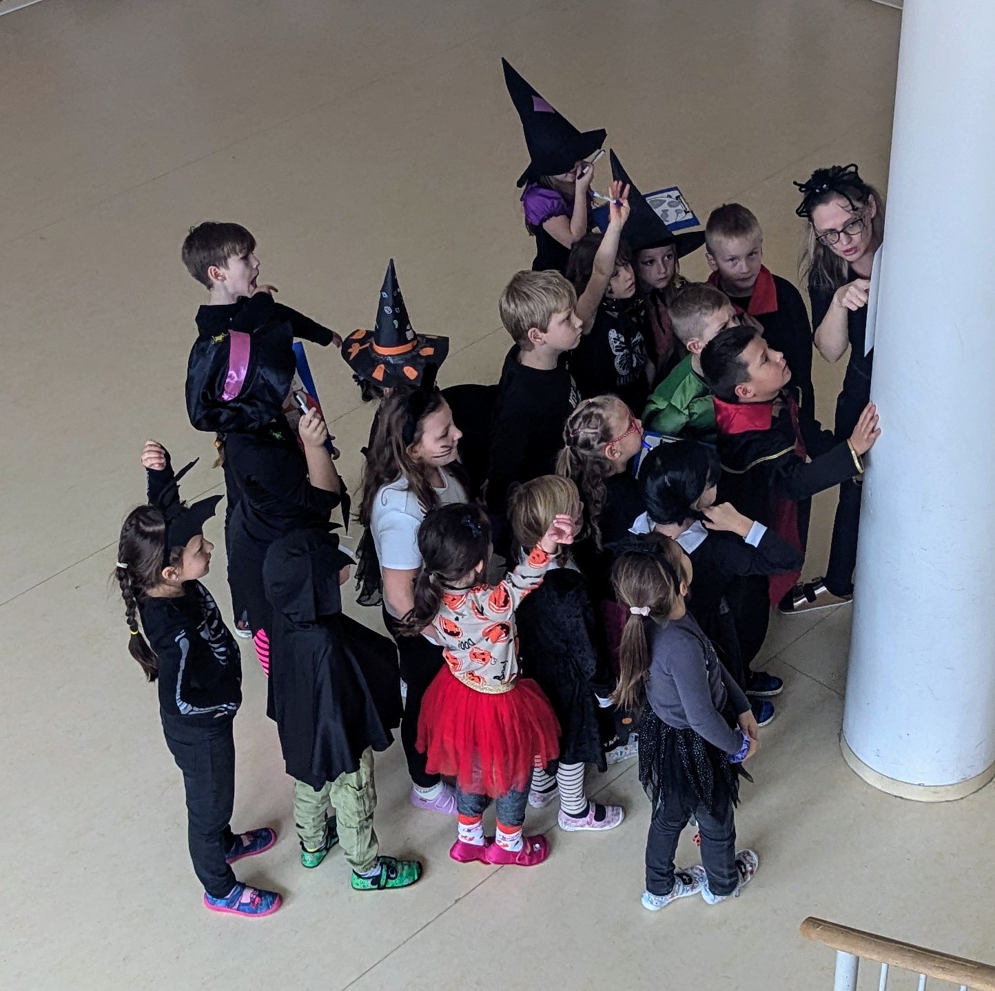 Halloween, Dušičky, to vše se snoubilo v jeden tematický den na 1.stupni naší školy. Kostýmy slušely nejen žákům, ale i učitelům. Vzájemné návštěvy, tematická výuka, připravená vystoupení, napečené dobroty od rodičů, to vše přispělo ke zpestření školního dne, k upevnění přátelských vztahů a k úsměvům na dětských i dospělých tváří. A to my na naší škole moc rádi vidíme.