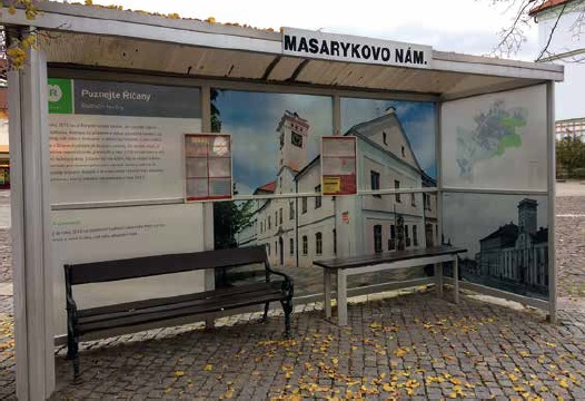 První čtyři autobusové zastávky se můžou pochlubit novým vizuálem na téma zajímavých či památných míst v našem městě. O motivu jste rozhodli sami v hlasování na Řídím Říčany. Současné barevné fotografie doplňují informace o místě čí památce a mapa města. Snímky z dob minulých přiblíží historii místa. Děkujeme Muzeu Říčany za poskytnuté fotografie a spolupráci při výběru. Jako první byly realizovány dvě zastávky na Masarykově náměstí a zastávkách K Železniční stanici.