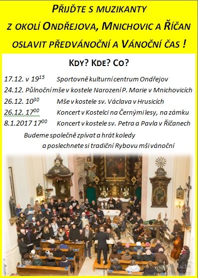 Umělecký vedoucí orchestru Petr Anděl mi k programu řekl : ,,Během mého ročního působení jsme nacvičili několik celovečerních programů a ty potom předvedli na koncertech. Na vánoční koncert jsem se letos rozhodl zařadit Českou mši vánoční Jana Jakuba Ryby, která se hraje často a ve velmi různých provedeních. Tentokrát chci, aby tato mše zazněla tak, jak ji v originále napsal Ryba. Pozvali jsme ke spolupráci kvalitní pěvecký sbor Canticorum iubilo a vynikající sólisty.