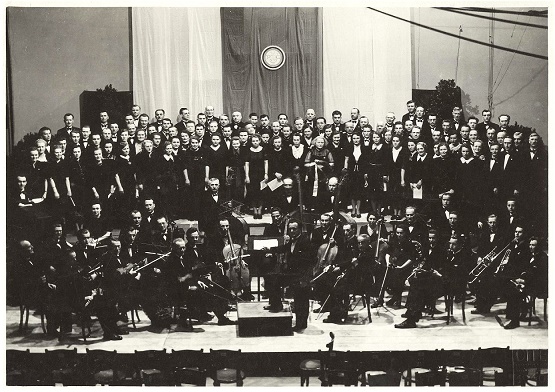 Pěvecký sbor Jablonský se symfonickým orchestrem, předválečné období. (zdroj Muzeum Říčany).