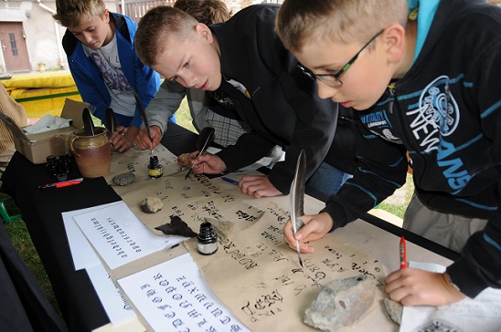 Psaní gotickým písmem můžete vyzkoušet i na výstavě.