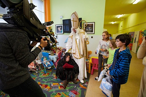 "Mikuláš ztratil plášť, Mikuláška sukni. Hledali, nenašli, byli oba smutní", i tyto verše dnes zpívali mladí pacienti, ale pomohly i maminky, které doprovázely své děti na oddělení Pediatrie, dodává Libuše Pešlová z Thomayerovy nemocnice.