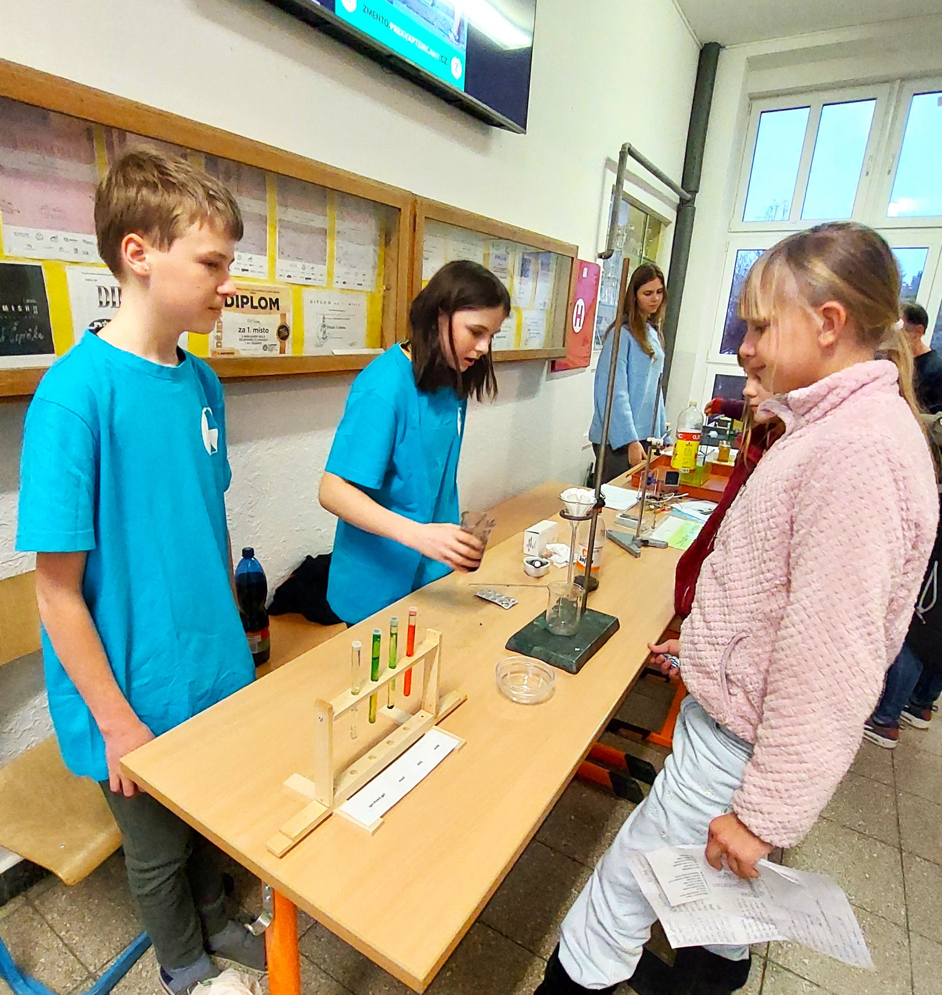 Ve středu 10. 12. 2025 se na našem gymnáziu tradičně konal Den otevřených dveří. Gymnázium bylo přístupné veřejnosti, budoucím uchazečům o studium i jejich rodičům. Návštěvníci se seznámili se studijními programy osmiletého i čtyřletého studia, s prostředím školy a dopoledne mohli navštívit vyučovací hodiny. Odpoledne si současní studenti spolu se svými vyučujícími připravili pestrý program: ukázky prací z jednotlivých předmětů, prezentace projektů, demonstrace pokusů i několik atraktivních soutěžních úkolů. V suterénu školy jste mohli vidět v činnosti Foucaultovo kyvadlo, novou učebnu biologie s ukázkou chovu martináče pajasanového, podívat se do mikroskopu, jak vypadají motýlí křídla a tykadla, i zajímavé chemické pokusy v nové chemické laboratoři. Vedení školy poskytovalo informace o studiu a akcích školy v aule a odpovídalo i na mnohé dotazy.