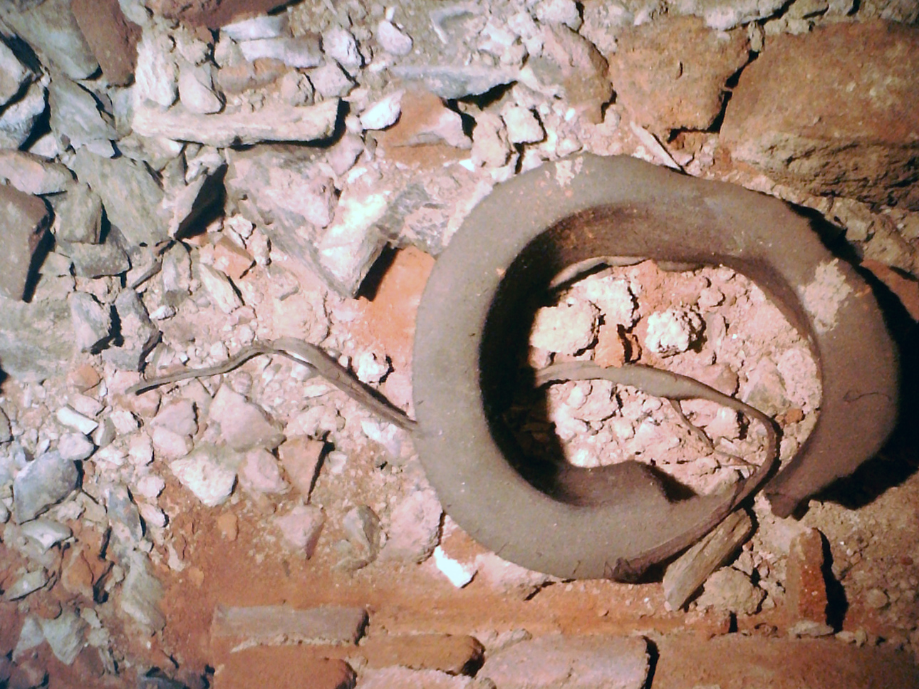 O několik měsíců později jsme vyvrtali mezi cihlami zazdívky dvoucentimetrový otvor a do tajné místnosti zasunuli speciální teleskopickou kameru s vysokým rozlišením. Tu experti ze spolku Naše historie běžně používají právě při nedestruktivním průzkumu podobných nepřístupných prostor. Nedávno ta samá kamera poprvé po mnoha stech letech nahlédla například do legendami opředené rožmberské hrobky v klášteře ve Vyšším Brodě. V Jažlovicích se však na monitoru připojeného notebooku podle očekávání neobjevil hrnec plný zlata, ale jen potrhaný dělnický klobouk, který v devatenáctém století patřil k běžným pokrývkám hlavy. Proč se jej některý z dávných stavitelů zbavil právě takto, se už asi nikdy nedozvíme.