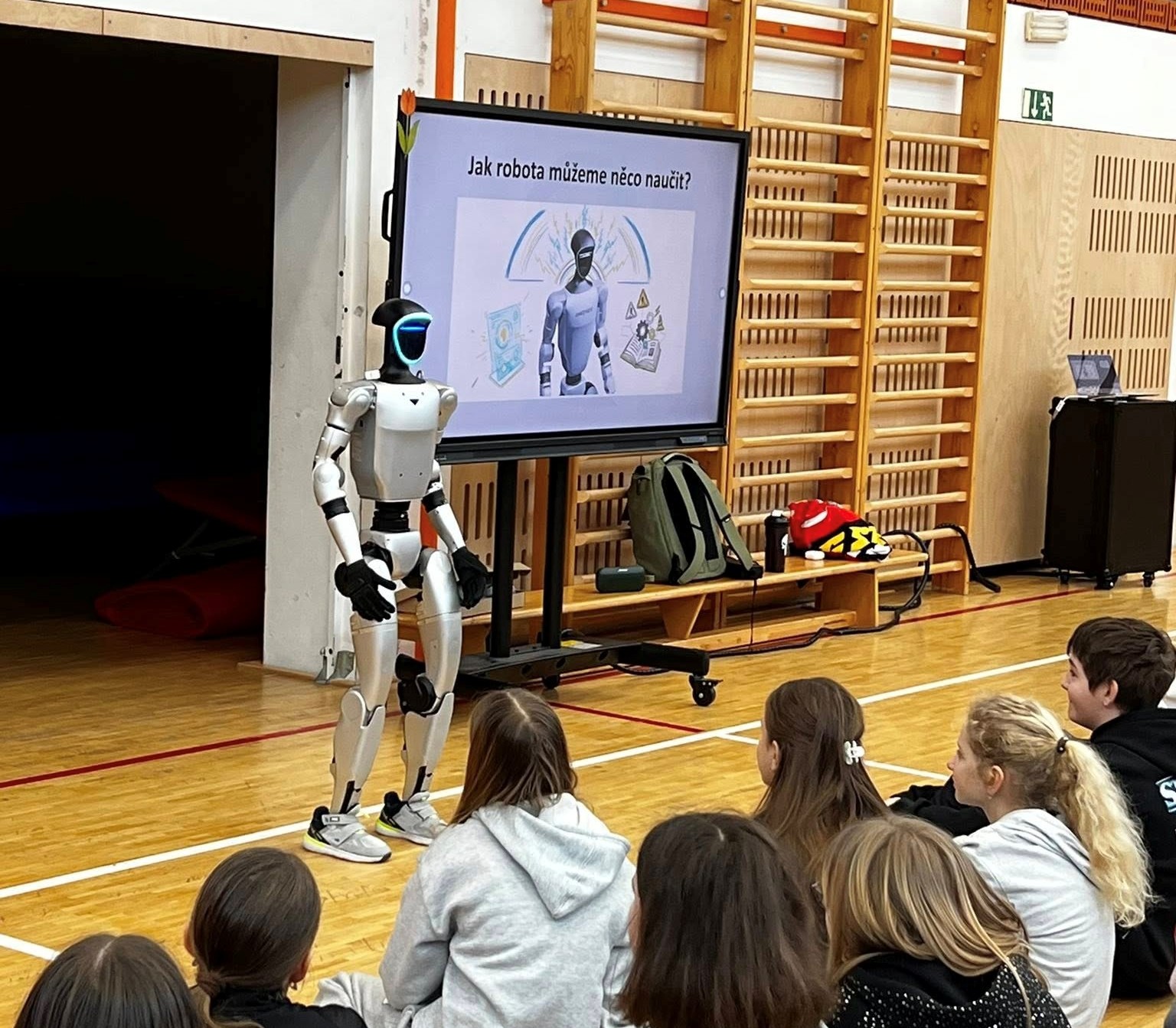 Školu a její žáky navštívil humanoidní robot s umělou inteligencí od neziskové společnosti AI Harmony. Technologická novinka, která zvládá běhat, skákat či tančit, ovládla školní tělocvičnu. U robota se vystřídali žáci všech tříd od nejmenších po deváťáky. Díky umělé inteligenci dokázal odpovídat i na všetečné otázky. Neměl problém přeříkat Archimédův zákon v mongolštině nebo vyslovit názor na budoucnost robotů. Pravda, umýt nádobí mu ještě dělá potíže, každopádně setkání s technologií druhé čtvrtiny 21. století bylo velmi inspirativní a přineslo mnoho otázek. A bylo unikátní, protože příležitost potkat „humanoida“ na školní chodbě není na Říčansku ani v ČR běžná záležitost.