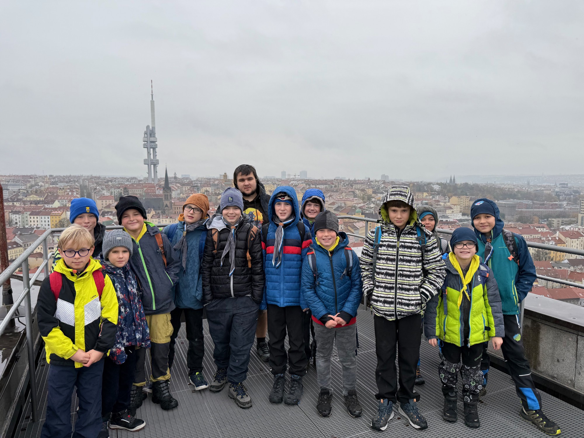 Po důkladném prozkoumání muzea jsme se vyškrábali na památník na Vítkově a nechali se ohromit působivými vnitřními prostory a výhledem na celou Prahu. Výhled opravdu stojí za to – nezkazil nám ho ani déšť a mlha.