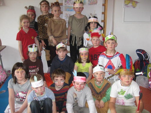 V dubnu jsme se přenesli do časů INDIÁNŮ a vyzkoušeli jsme si jejich obratnost, vytrvalost, zručnost, bojovnost a důvtip. Počasí bylo příznivé, a tak se děti mohly vydovádět na školní zahradě, kam přišli i rodiče s menšími dětmi.