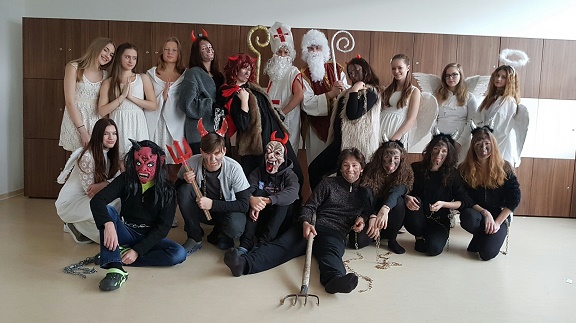Mikuláš byl letos plně v rukách 9.A. Holky a kluci se převtělili do krásných Mikulášů, andělů a čertů, s třídními učiteli jednotlivých tříd sepsali seznam hříšků a pochval, obdrželi koše s dárečky pro děti a 5.12. navštívili děti v jejich třídách. Tímto jim děkujeme a těšíme se na další akci!