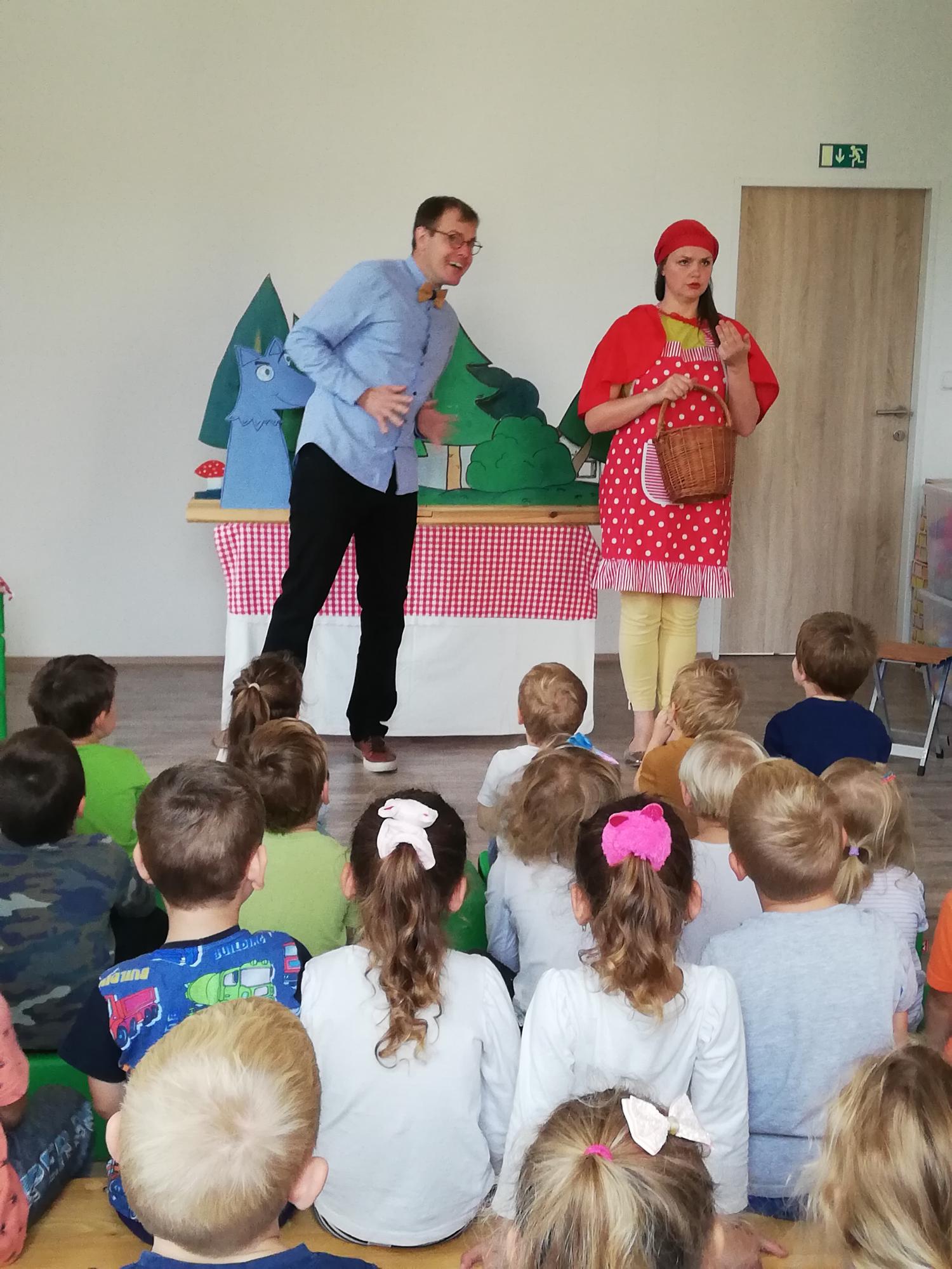 Říjen byl také plný zážitků. Děti zhlédly divadelní pohádku O Červené Karkulce. Den stromů jsme oslavili prací se dřevem v „dřevíčkové dílně“ v rámci polytechnického vzdělávání. S lektory lesní pedagogiky se děti vydaly do blízkého lesa nevšedním způsobem poznávat stromy a keře.