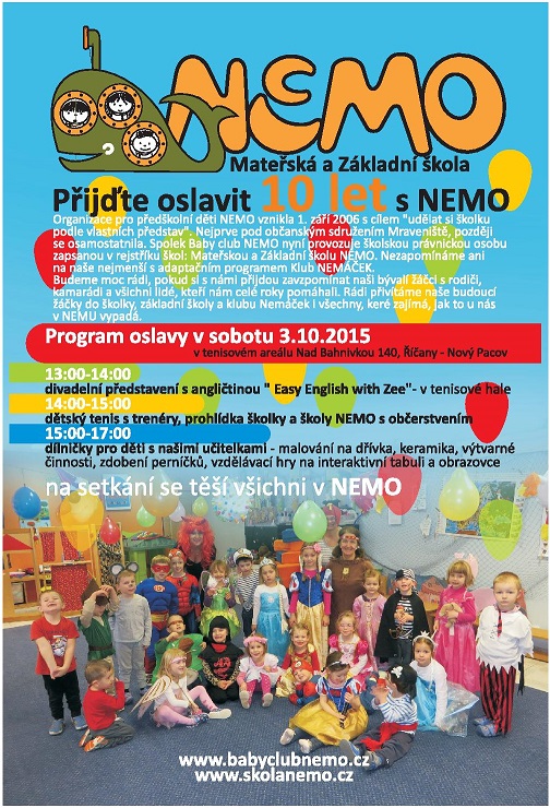 - Přijďte oslavit 10 let s Nemo - ZŠ Nemo přijme holčičky do 1.třídy