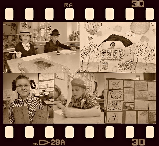 Druhou akcí byl projektový týden žáků 1. stupně. Děti se nejen seznámily s historií školy, ale různými aktivitami si vyzkoušely, jak to v minulosti ve škole chodilo. Vznikly tak cenné výstupy v mnoha kreativních podobách, a to včetně zakopání poselství dalším generacím na zahradě školy.