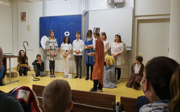 Třídě 6. A se konečně, ještě před odchodem na jarní prázniny, podařilo pro rodiče zahrát nazkoušené vánoční představení o narození Ježíše. Představení sice původně mělo být sehráno před vánočními prázdninami, ale vzhledem k epidemickým nařízením se to nepodařilo. Pak do toho zase vstupovaly karantény herců či dokonce onemocnění covidem. Vše ale nakonec dobře dopadlo a věříme, že si diváci představení užili.